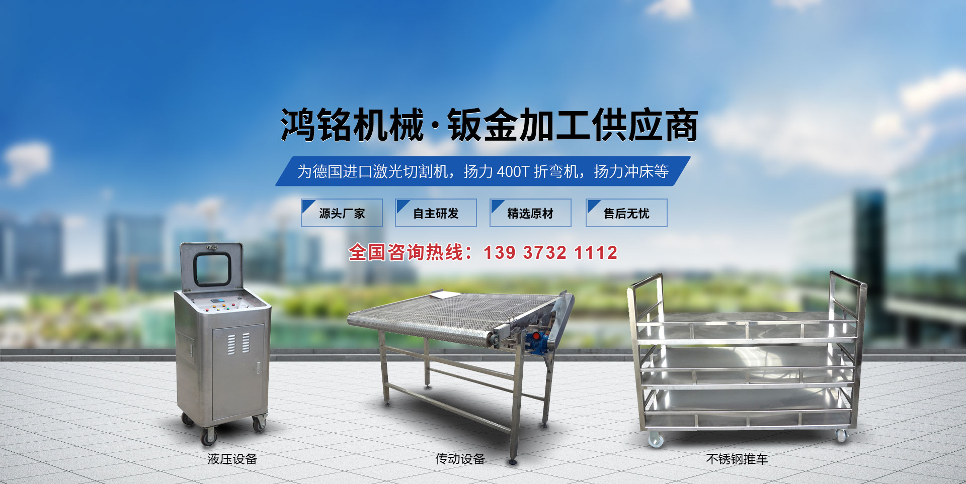 新鄉市鴻銘機械有限公司成立于2009年,占地面積8000平方米,位于新鄉市衛濱區南環路,地理位置優越,交通便利。 本公司設備為德國進口激光切割機,揚力400T折彎機,揚力沖床等設備。主要從事鈑金加工、及生產各類金屬鈑金零部件及生產各類沖壓零件?! 」鹃L期與國內外大型企業合作深受新老客戶的贊賞,同時公司對外承接各類鈑金加工業務(標準鈑金件與非標鈑金件),先后為多家知名企業配套加工鈑金,公司也可根據客戶的需要代為設計,尤其對精度、外觀要求高的產品有獨到的生產經驗。 我們本著"科學管理、全員參與、持續改進、滿足客戶"的質量方針來生產我們的每一件產品。為了在市場競爭中立于不敗之地,公司以質量求生存,以設備保精度。歡迎新老客戶到本公司實地考察?! ”酒髽I建立以來,以"質量保證,信譽保證,交貨及時,價格合理"為宗旨,贏得了客戶的一致好評。面對市場經濟的挑戰,公司將以產品和服務參與市場競爭,為廣大客戶提供鈑金加工平臺。